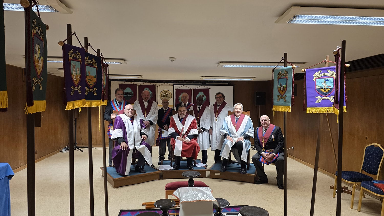 On 10th February, the Chapter of Discoveries nº 9409 installed the Principals of the Chapter. For the first time in many years none are PZ’s, with the planned succession to continue that trend. The Officers for the new Masonic season were invested by the new MEZ in a ceremony full of beauty and the spirit characteristic of the Royal Arch.
